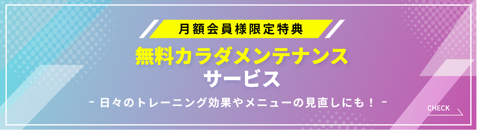 ※パーソナルトレーニングは、月額会員様がご利用いただけるオプションメニューです。